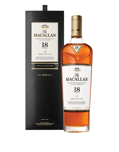 Complex Single Malt, matured at The Macallan distillery for a minimum of 18 years in selected Sherry oak casks from Spain. Rich palate of dried fruits, spice, orange and wood smoke. Full-bodied, lingering, smooth, elegant and aromatic finish.