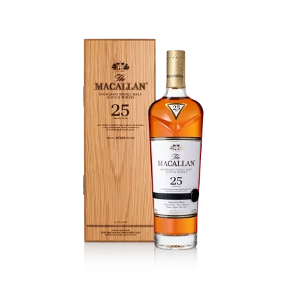 The Macallan Sherry Oak 25 Years Old forms part of our Sherry Oak Collection which features a series of single malt whiskies matured exclusively in hand-picked sherry seasoned oak casks from Jerez for richness and complexity. This special single malt delivers an intensely rich color and full flavour character, citrus, dried fruits and wood smoke.